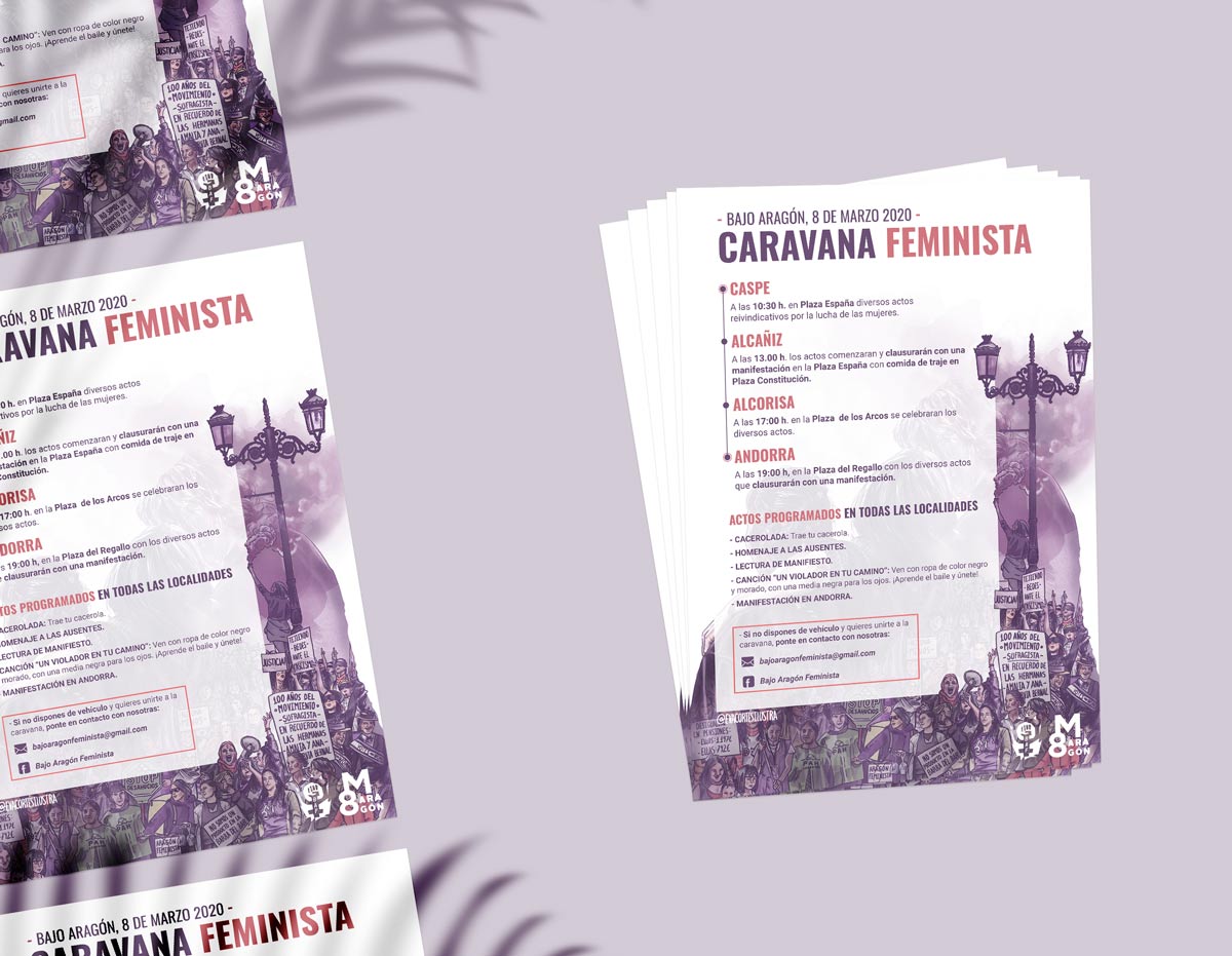 Campaña 8M Aragón 2020: Ilustración, maquetación y diseño para todas las necesidades de la jornada de huelga en la comunidad autónoma aragonesa, desde la cartelería de todas las localidades que solicitaron su adaptación a sus actividades y manifestaciones, hasta las programaciones, carteles de las caravanas por los diferentes pueblos, y adaptaciones para las diferentes asambleas de la ciudad de Zaragoza.