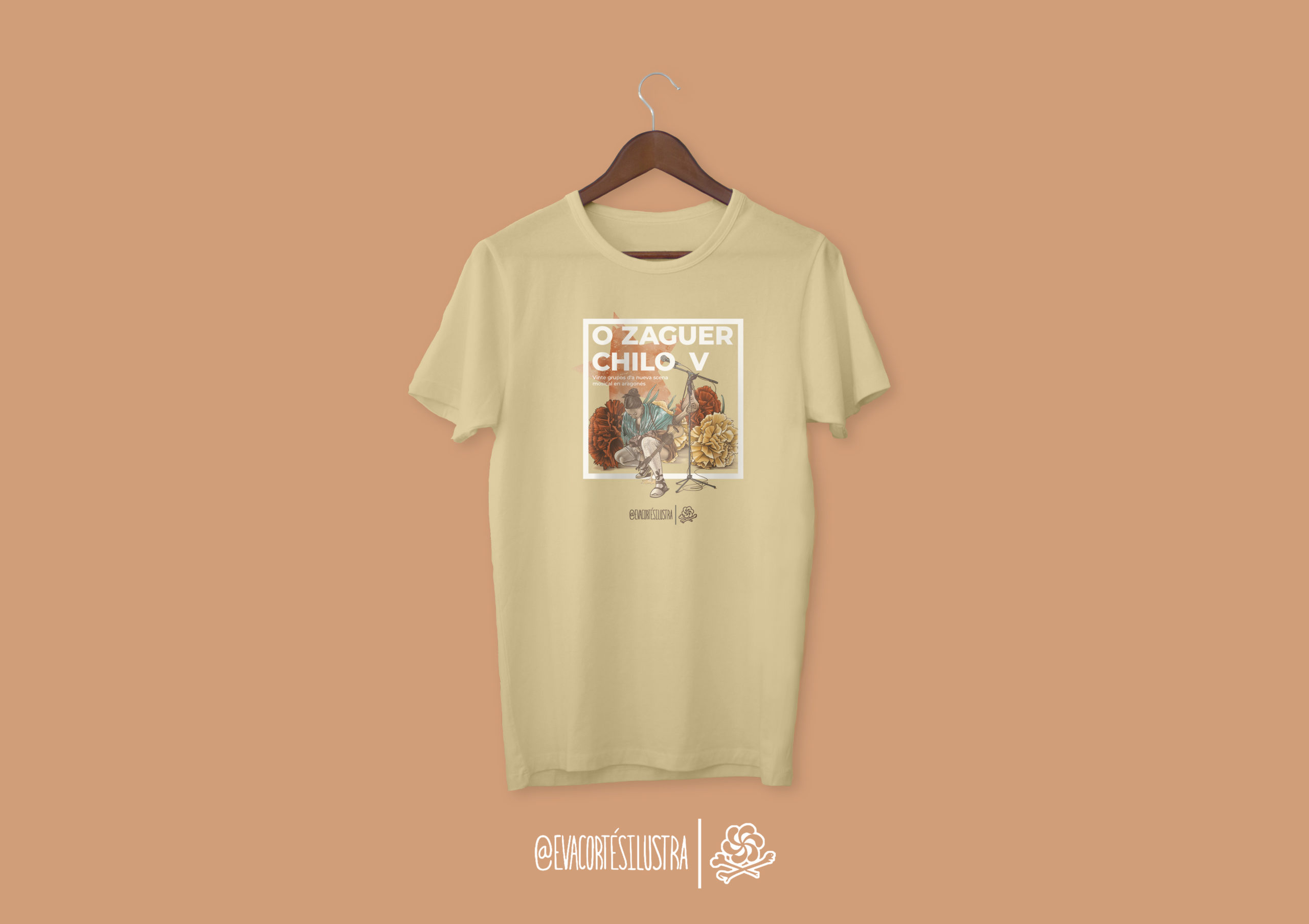Esta camiseta es una reivindicación contra la censura. Esta ilustración responde a la carátula dibujada por Eva Cortés para el proyecto «O Zaguer Chilo V» de la Asociación Cultural Nogará-Religada. La portada de dicho disco fue retirada por petición del partido político de ultraderecha (cuyo nombre no vamos a nombrar), porque era ofensiva la representación de una «jotera orinando» en una imagen de un proyecto vinculado al Ayuntamiento de Zaragoza. Es entonces, cuando el gobierno del PP aceptó la petición de retirada haciendo una actuación digna de censura.